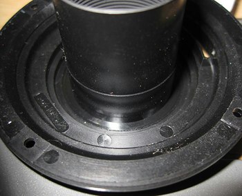 Unten das Objektiv ohne Bajonett, man sieht hier die abgeschnittene