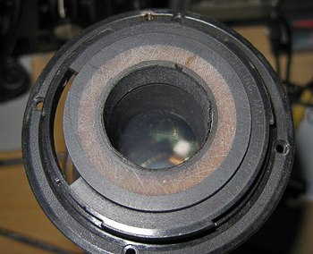 reinschrauben des Objektivs in den Konverter verhindert. Also Objektiv nach http://www.kerstenkircher.de/fototechnik/index.htm?pn_go=details&id= 29 auseinandergebaut, (4 Schrauben am Bajonett, 2 Schrauben an der Kontaktleiste) den Deckel von innen mit Polyesterharz gefüllt, damit das Bajonett beim Abschleifen nicht in 2 Teile zerfällt, und ca 3-4mm abgeschliffen. Vor dem Zusammenbau muß man die Führungsschiene für das Folienkabel etwas abschneiden, da die Schiene sonst bei Brennweitenänderung von innen an das Bajonett anstoßen würde. Da das Polyester durchscheinend ist, wird hier noch etwas schwarzer Lack aufgetragen und wieder zusammengebaut. Jetzt kann mein Objektiv mit dem Konverter 375mm ;-) |